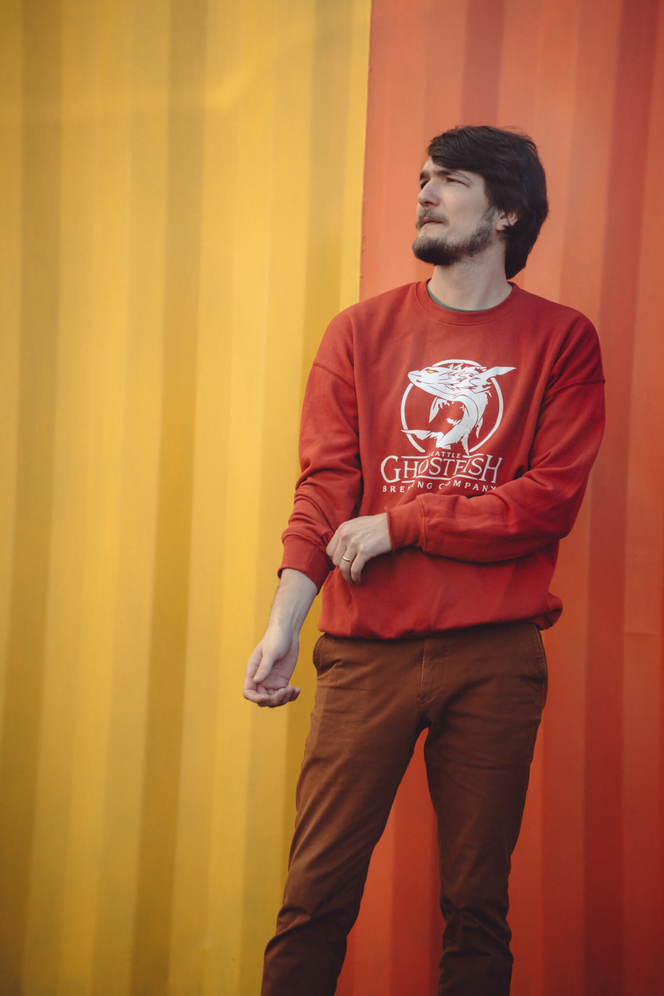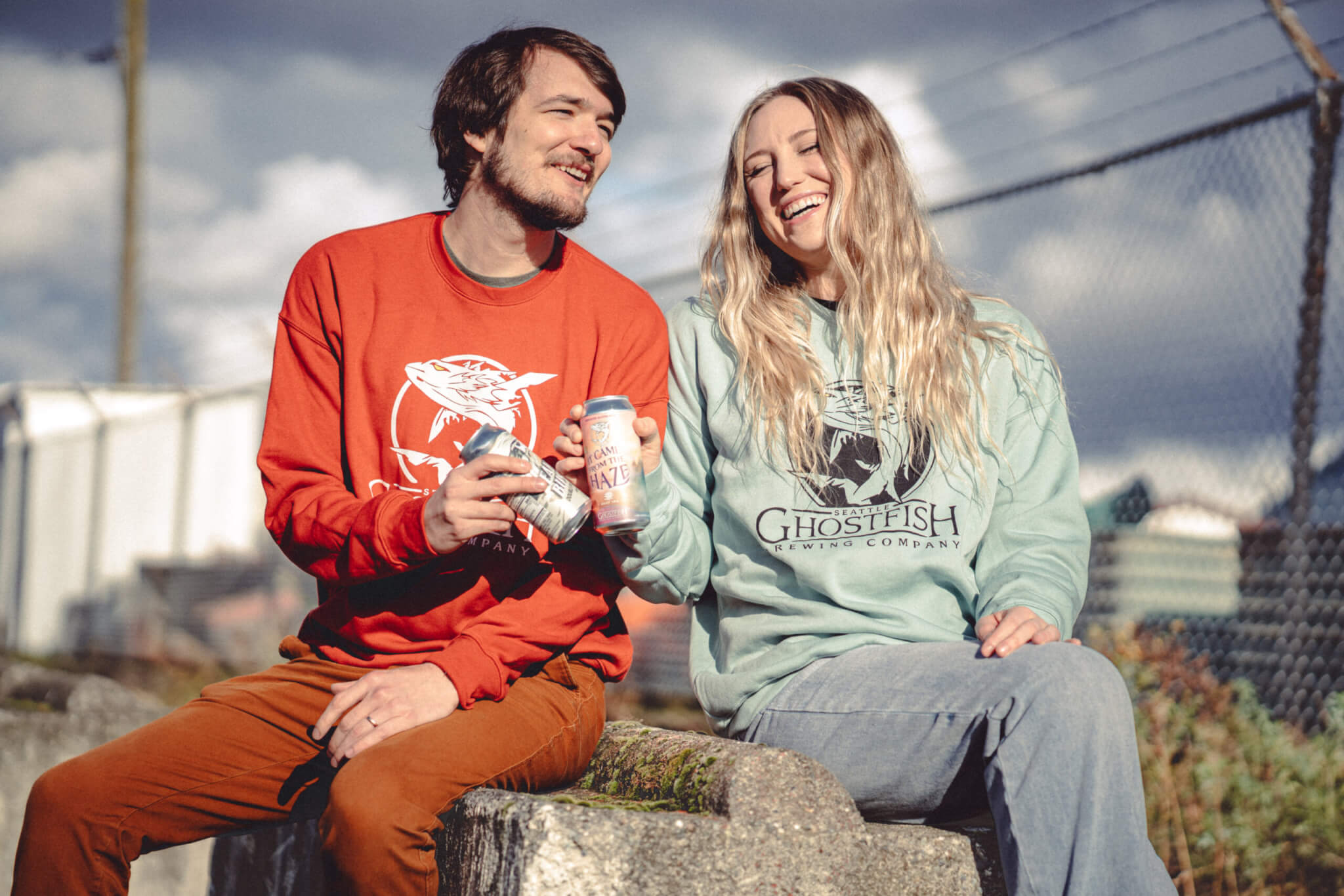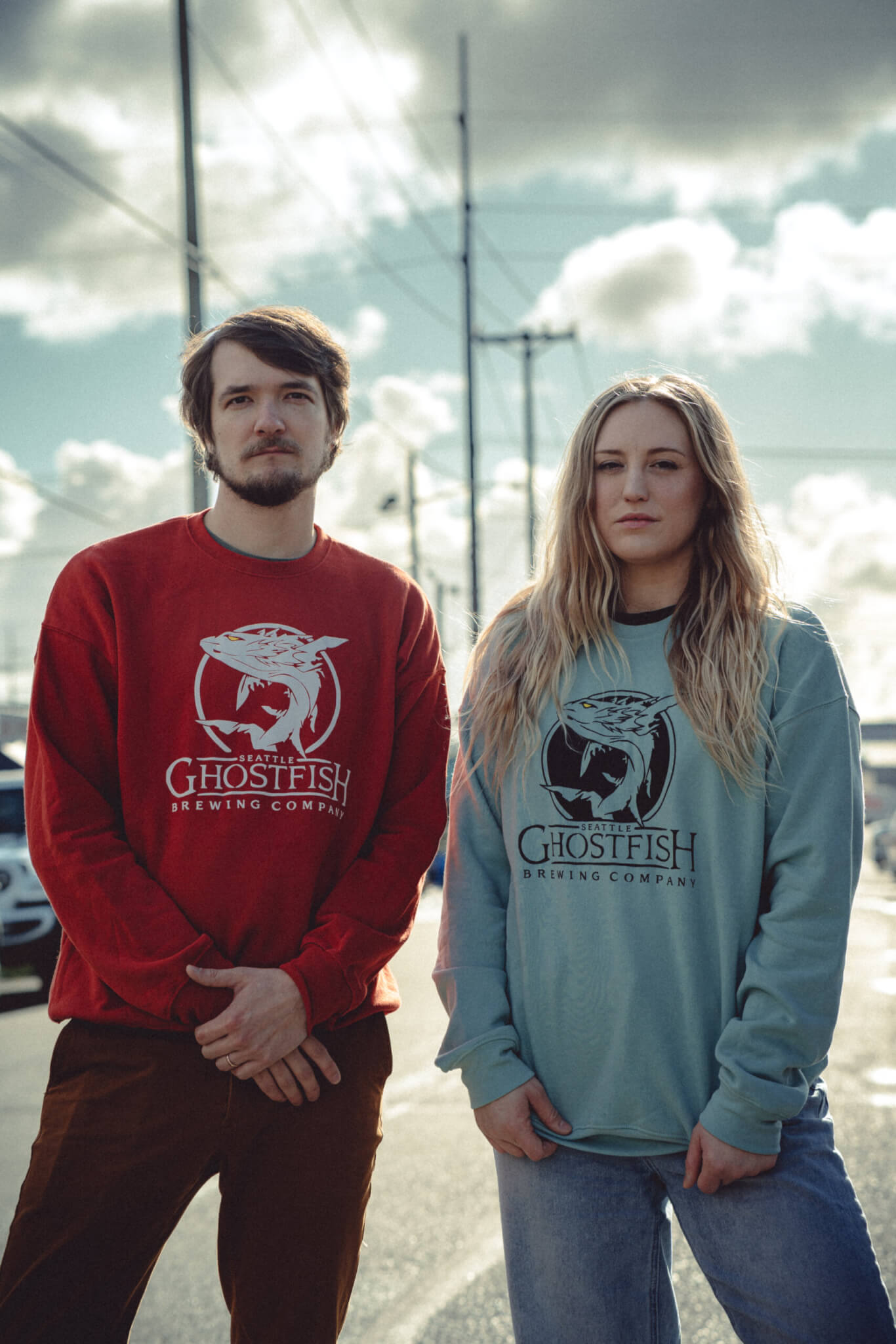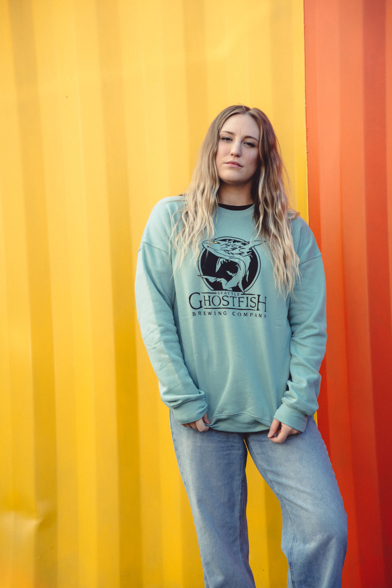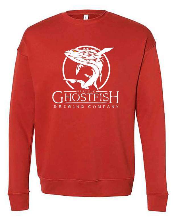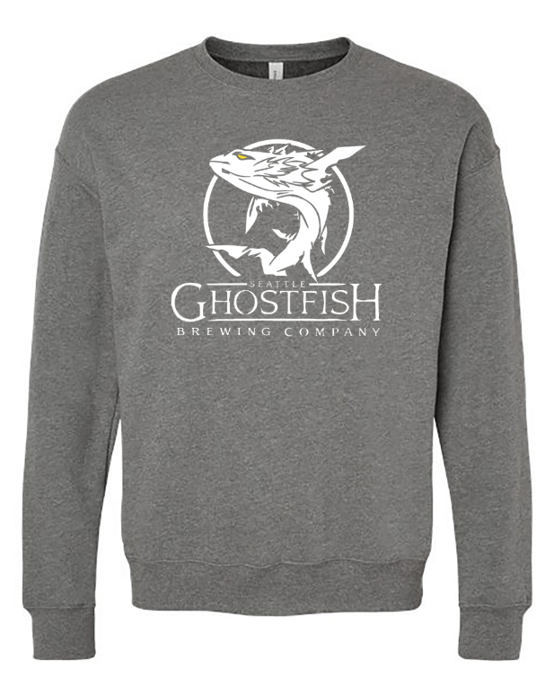 You’ll feel warm and cozy in this super-soft unisex sponge fleece drop shoulder crewneck featuring the classic Ghostfish logo.