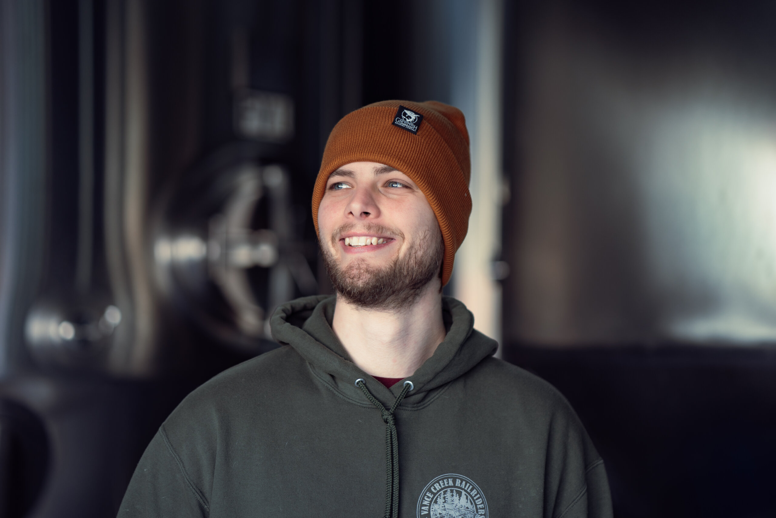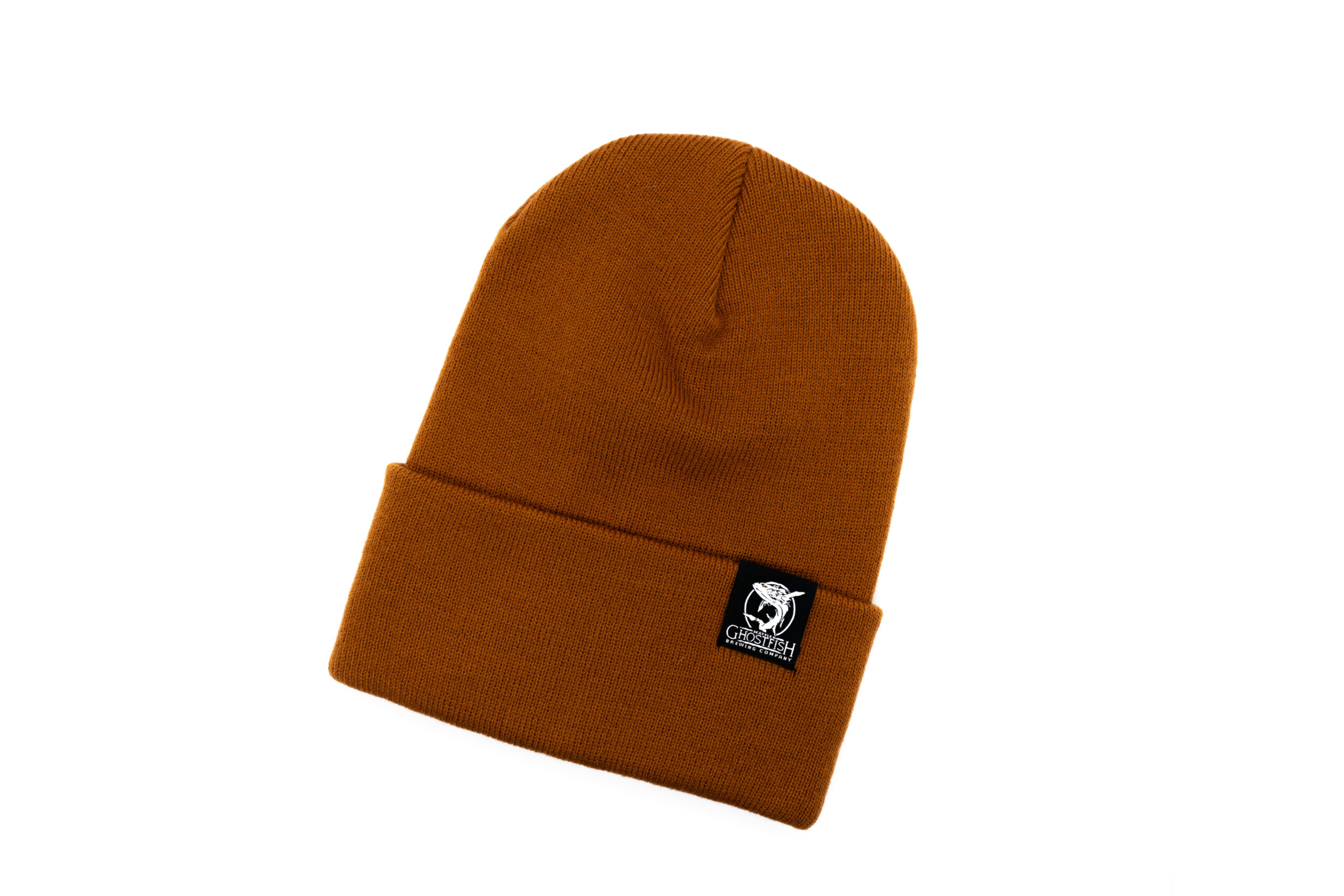 This mid-weight wide cuff jersey knit beanie features a woven Ghostfish logo clip label on the cuff.
