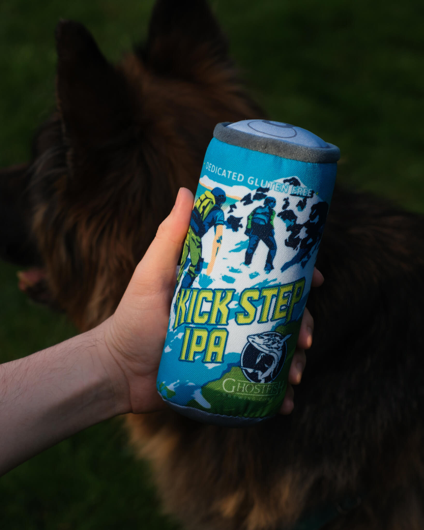 Our Kick Step IPA is a project with The Mountaineers. Ghostfish and The Mountaineers were both founded on the idea of transcending limits. We thrive on a spirit of wonder, a sense of adventure, and a commitment to the wild places of the Pacific Northwest. We’re powered by strong passionate communities who support our missions. Whether it’s distinctive craft beer made from high-quality, low-impact grains, or unique, life-changing experiences in the outdoors, we believe life is meant to be lived and lived well–no matter who you are. This is Kick Step IPA: a liquid representation of our shared value with The Mountaineers. What a better choice for your adventurous pup, than our Kick Step IPA Plush Dog Toy!