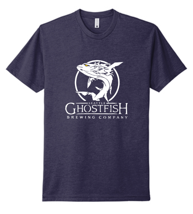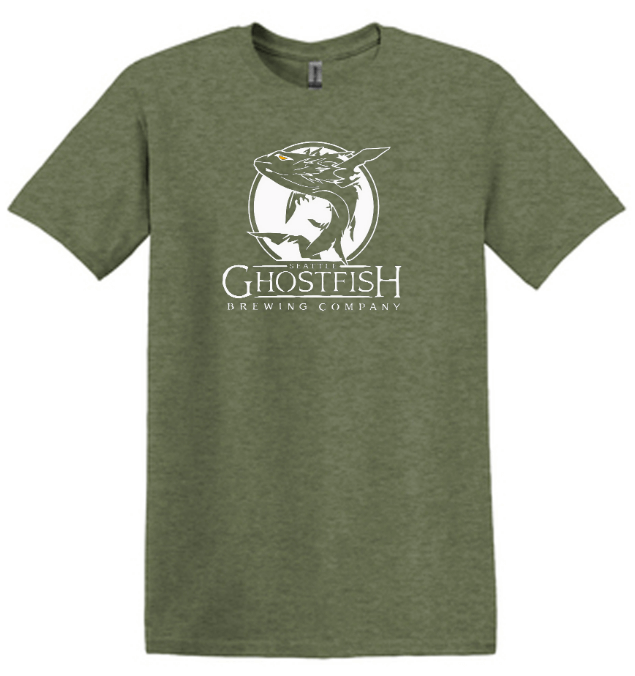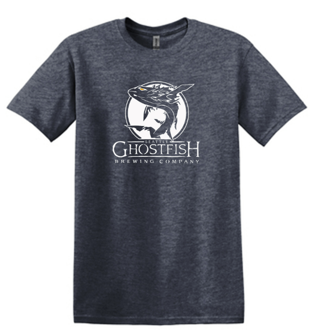 Show off your love for Ghostfish with this unisex short sleeve t shirt. This shirt features the classic Ghostfish Brewing logo on the front and a smaller icon logo on the back with our tag line: “Unusual grains. Legendary taste.”